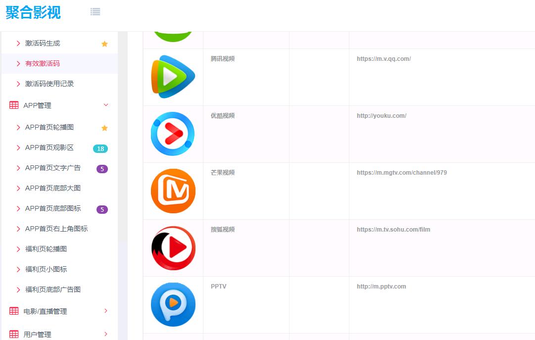 1.app 首页的轮播图和各大视频网站以及首页的文字和下方广告都可以在后台添加/删除