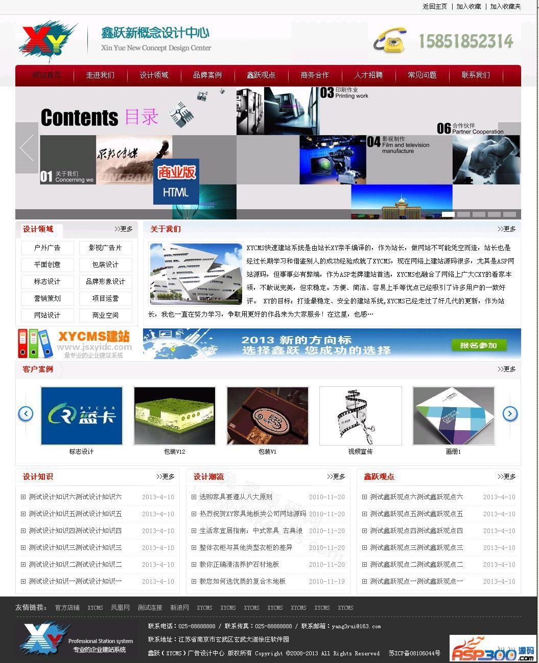 xycms 广告设计中心网站系统是以 asp+access 进行开发的广告公司网站