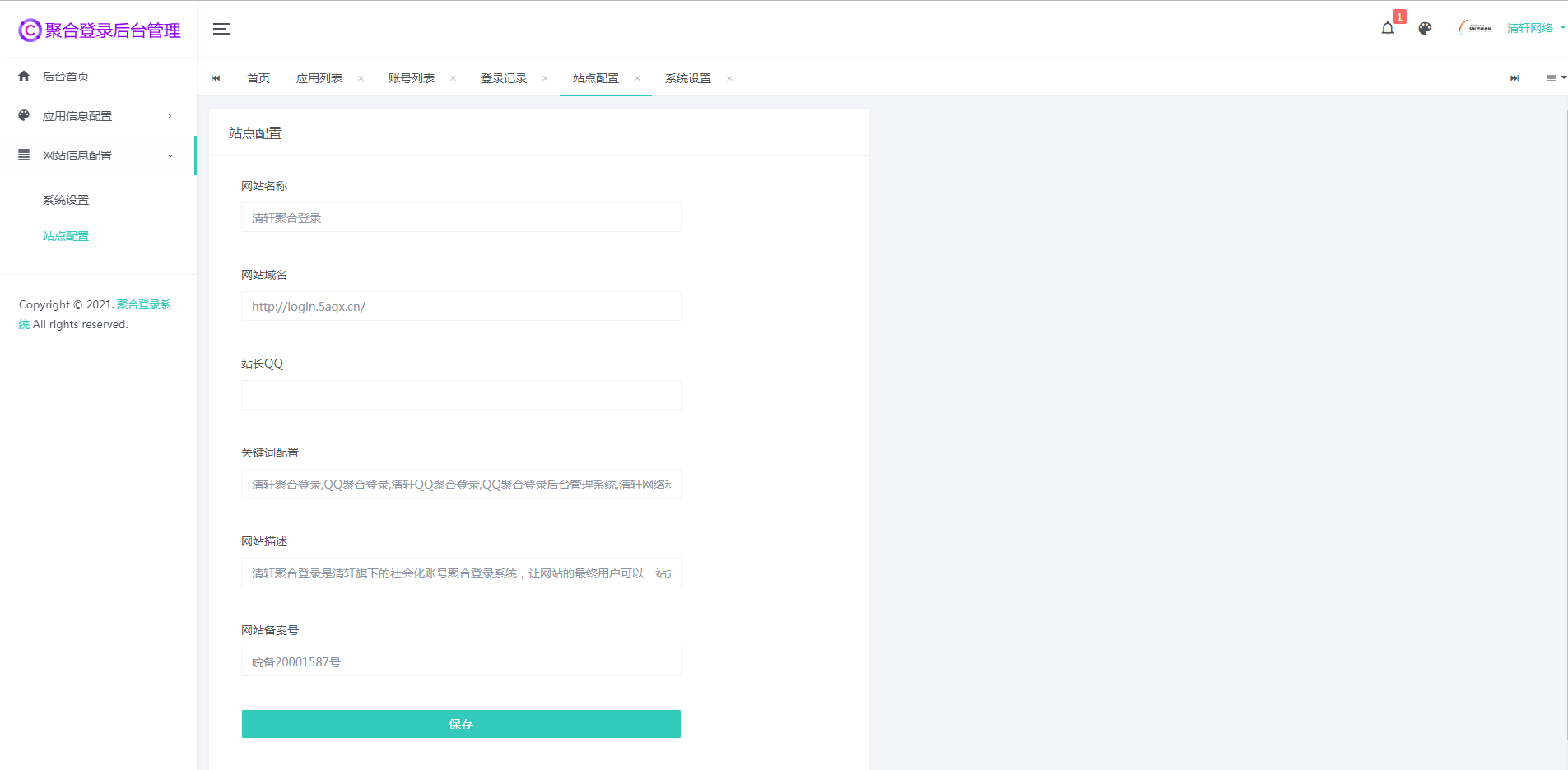有多应用管理、域名限制、账号记录、登录记录功能。聚合登录中转API就是为了解决多个网站