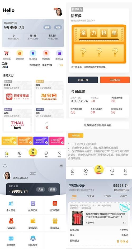 四月全新 V10 抢单系统唯品会京东淘宝自动抢单区块系统源码带抢单/接单佣金返利/利息宝与会员等级制完整源码。