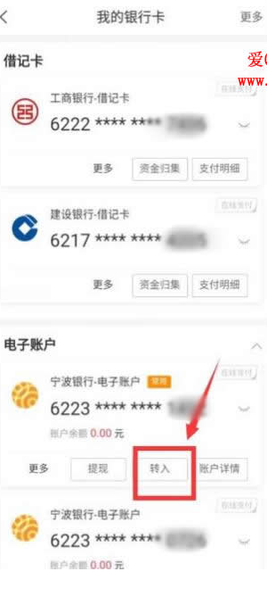 2、再点下面的电子账户–转入2毛进去–再点下面的电子账户(眼睛)–复制卡号