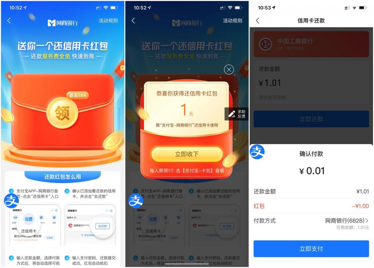 2、然后去信用卡还款1.01元->选择网商银行支付0.01元即可