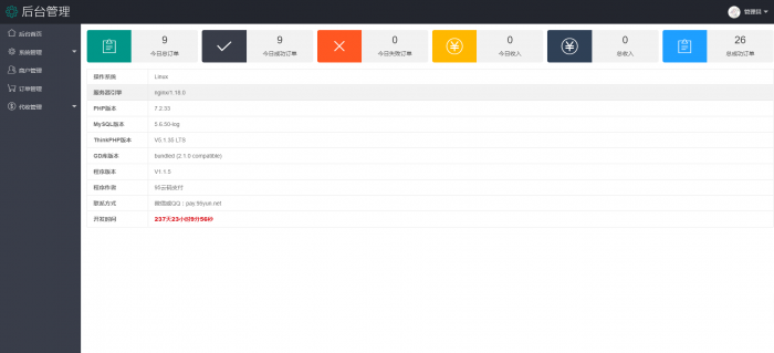 2.后台地址 你的域名/admin 账号admin 密码123456
