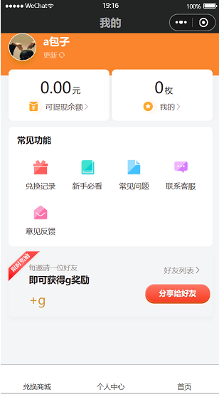 兑换商城:支持实物+红包,还有邮费哦也是一笔不菲的收入