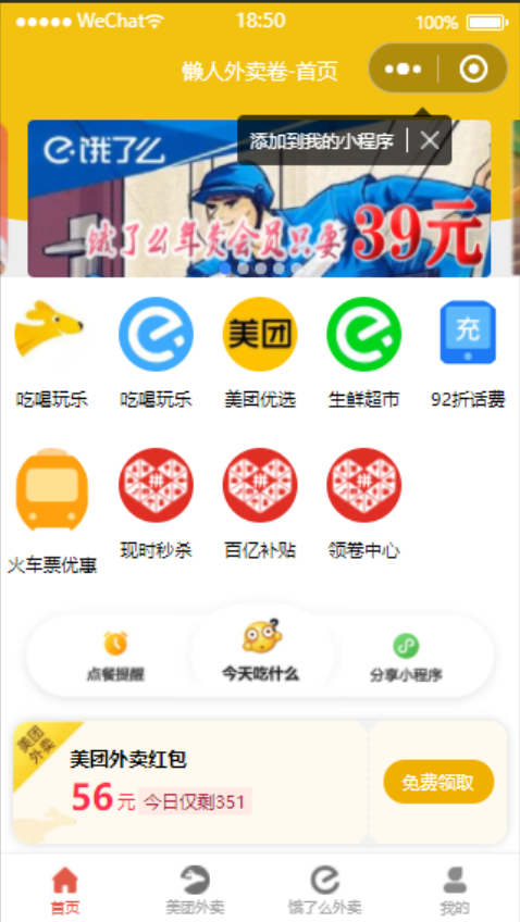 1、全部可对接自己的CPS渠道,美团可对接美团官方或第三方,饿了么对接淘宝联盟,电影票也可对接自己的API;