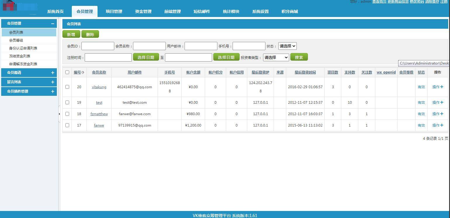 PHP+MYSQL 开发的众筹网站系统,众筹即大众筹资或群众筹资,互联网众筹作为快速筹集资金渠道的一种,