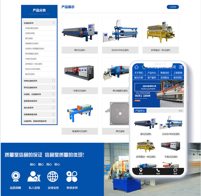 营销型压滤机过滤设备类网站织梦模板(带手机端)+PC+移动端+利于SEO优化