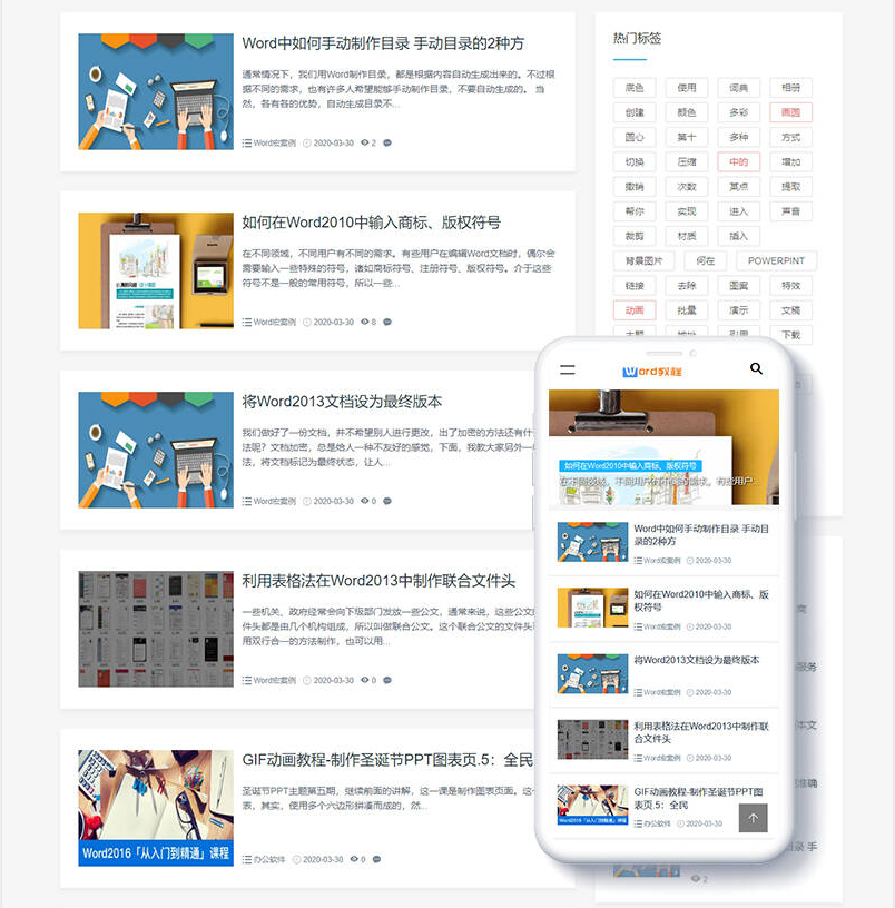 响应式WORD教程资讯类网站织梦模板(自适应手机端)+PC+wap+利于SEO优化