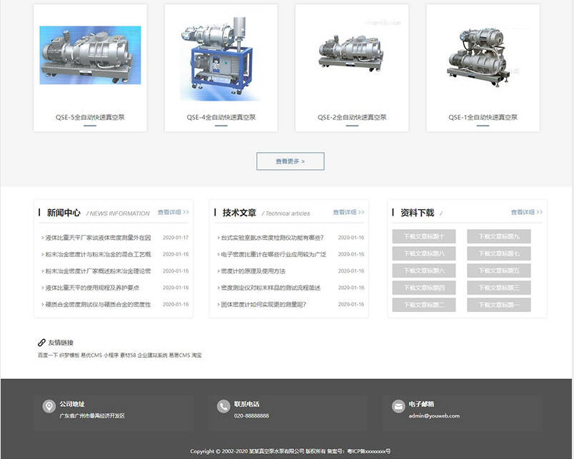 织梦最新内核开发的模板,该模板属于企业通用类、真空泵、水泵设备类企业都可使用,