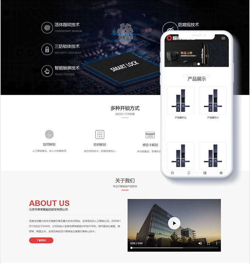 织梦最新内核开发的模板,该模板属于企业通用类、智能锁具、电子片研发类企业都可使用,