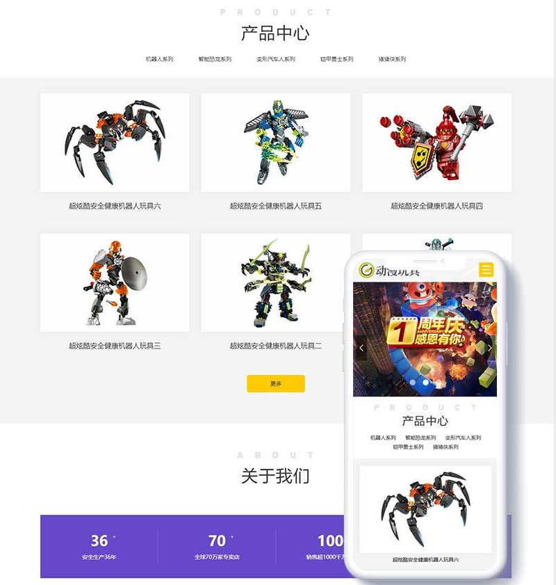 响应式玩具动漫类网站织梦模板(自适应手机端)+PC+wap+利于SEO优化