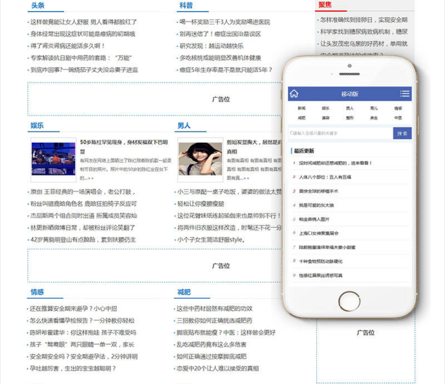 新闻时报资讯类网站织梦模板(带手机端)+PC+移动端+利于SEO优化