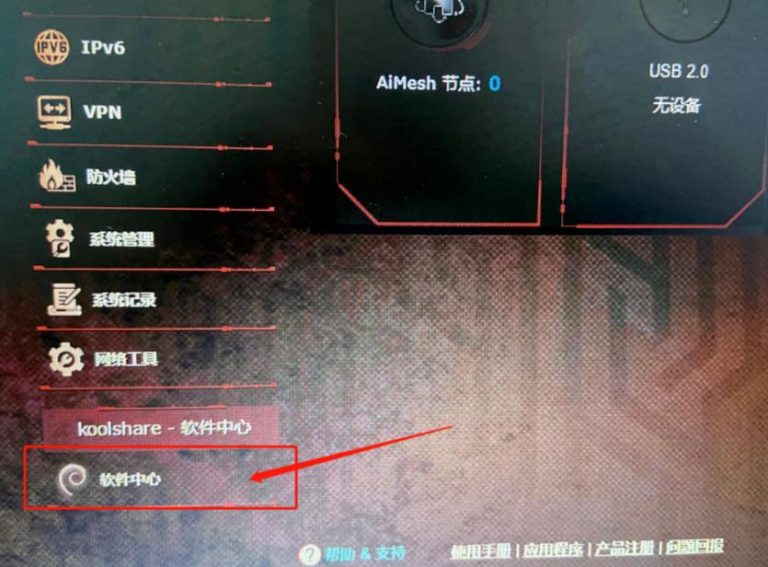 拿到路由器并且链接网络之后,登陆路由器的后台:左下⻆有个软件中心