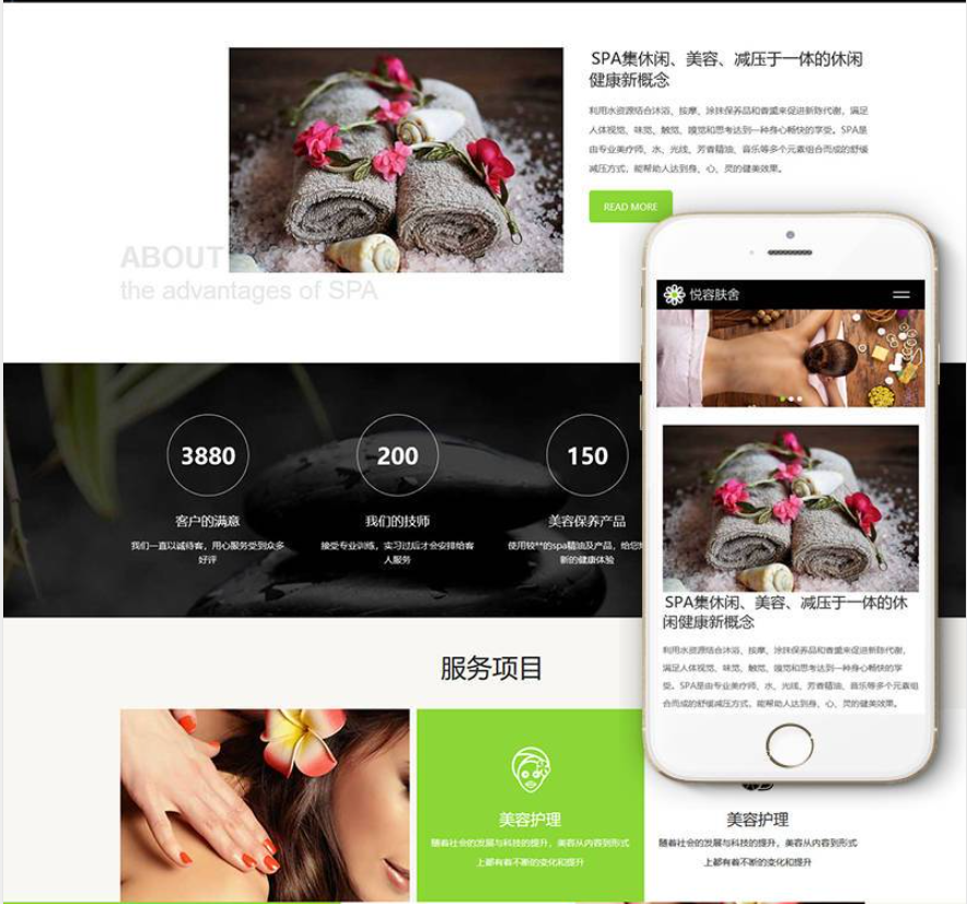 响应式美容美体类网站织梦模板(自适应手机端)+PC+wap+利于SEO优化