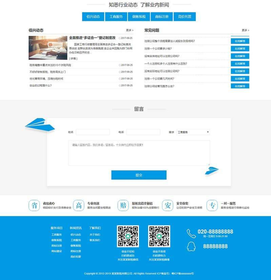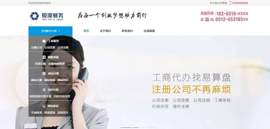 织梦最新内核开发的模板,该模板属于财税记账、工商注册类企业使用,