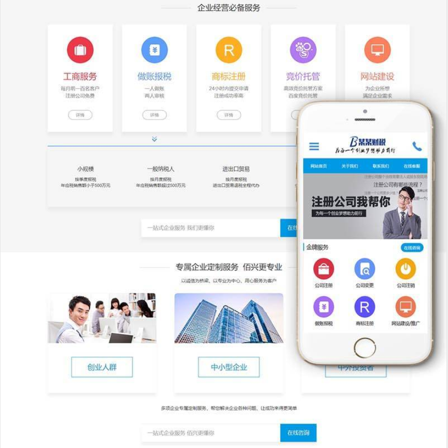 财税记账工商注册认证公司类织梦模板(带手机端)+PC+移动端+利于SEO优化