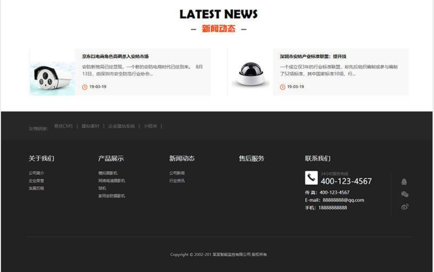 织梦最新内核开发的模板,该模板属于企业通用类、智能安防、智能监控类企业都可使用,
