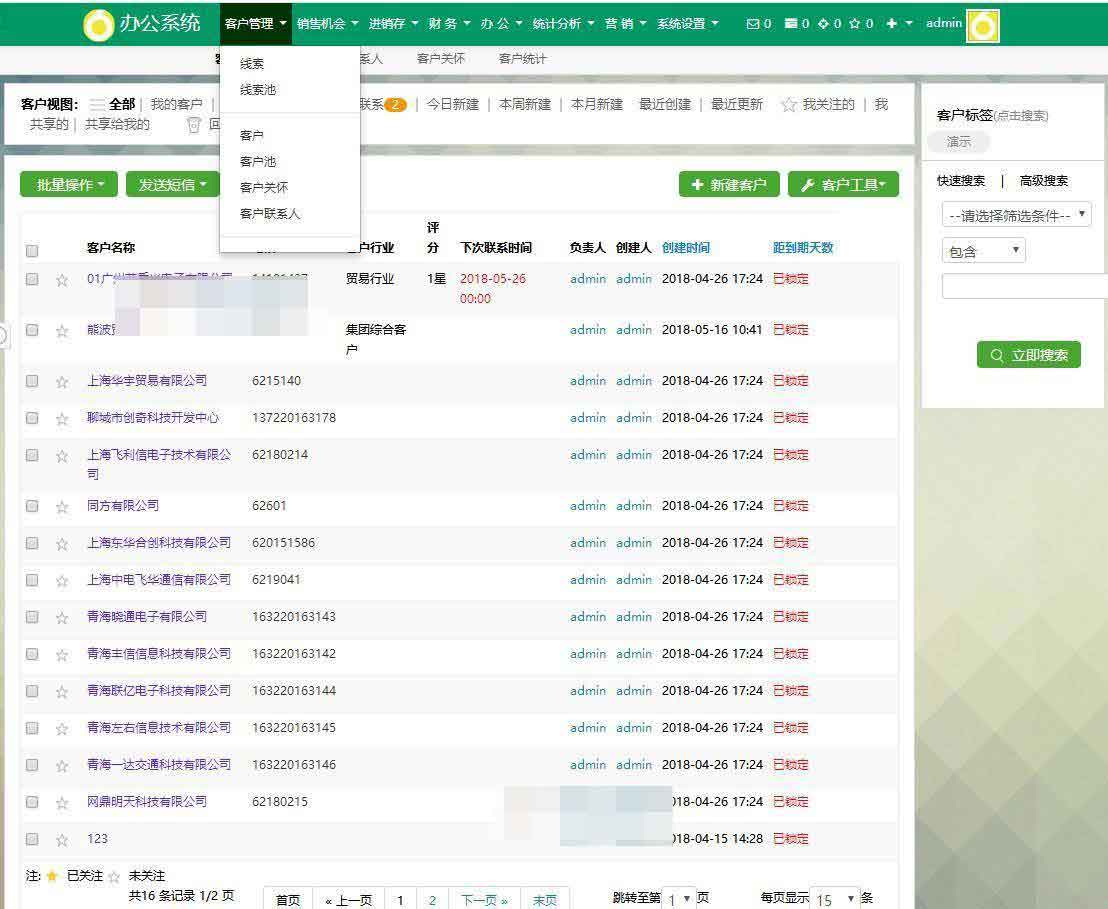 避免造成资源的闲置浪费;客户模块中拥有高级筛选功能,提升客户分类查询效率;