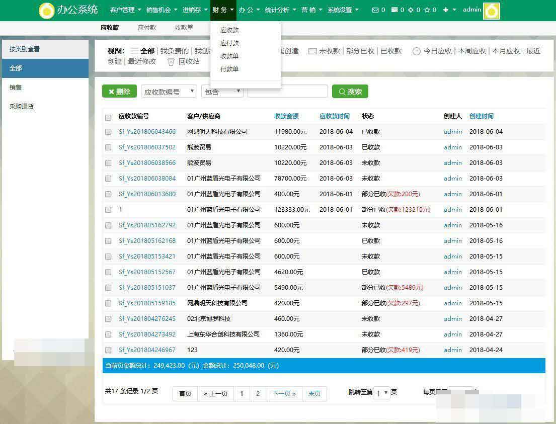 4、应收款创建完成之后,可设置不同时间回款计划(到期会有站内信提醒);