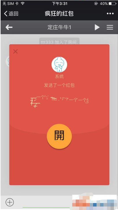 当其中一个玩家抢到庄主后,按房间左下角的圆形加号发出游戏包,根据房间的玩家的数量,决定发的包数,金额,按照每个人0.3-0.6的金额平均值决定发包金额大小。当玩家点击拆红包时,系统会冻结他的账户金额,冻结金额=13(最大倍数) *5(单倍金额) =65 金币。当红包抢完,或者过期过期时间到,系统把输赢金币加上押金一起返回给玩家,以避免逃包的情况发生。**押金 = 13(最大倍数)*5(单倍金额) * 发包数。