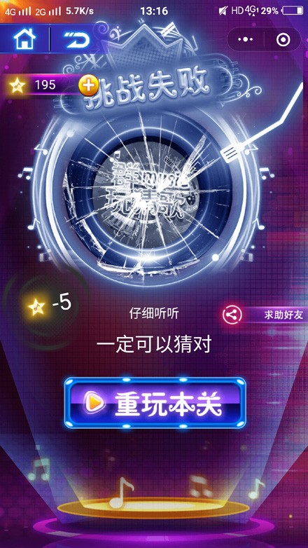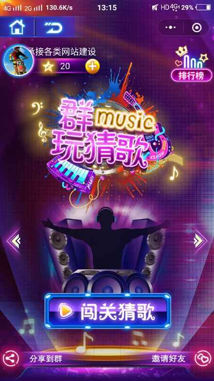 4,小程序可生成 小程序码或转发给好友来猜歌,双方都可获得积分,有助于推广。