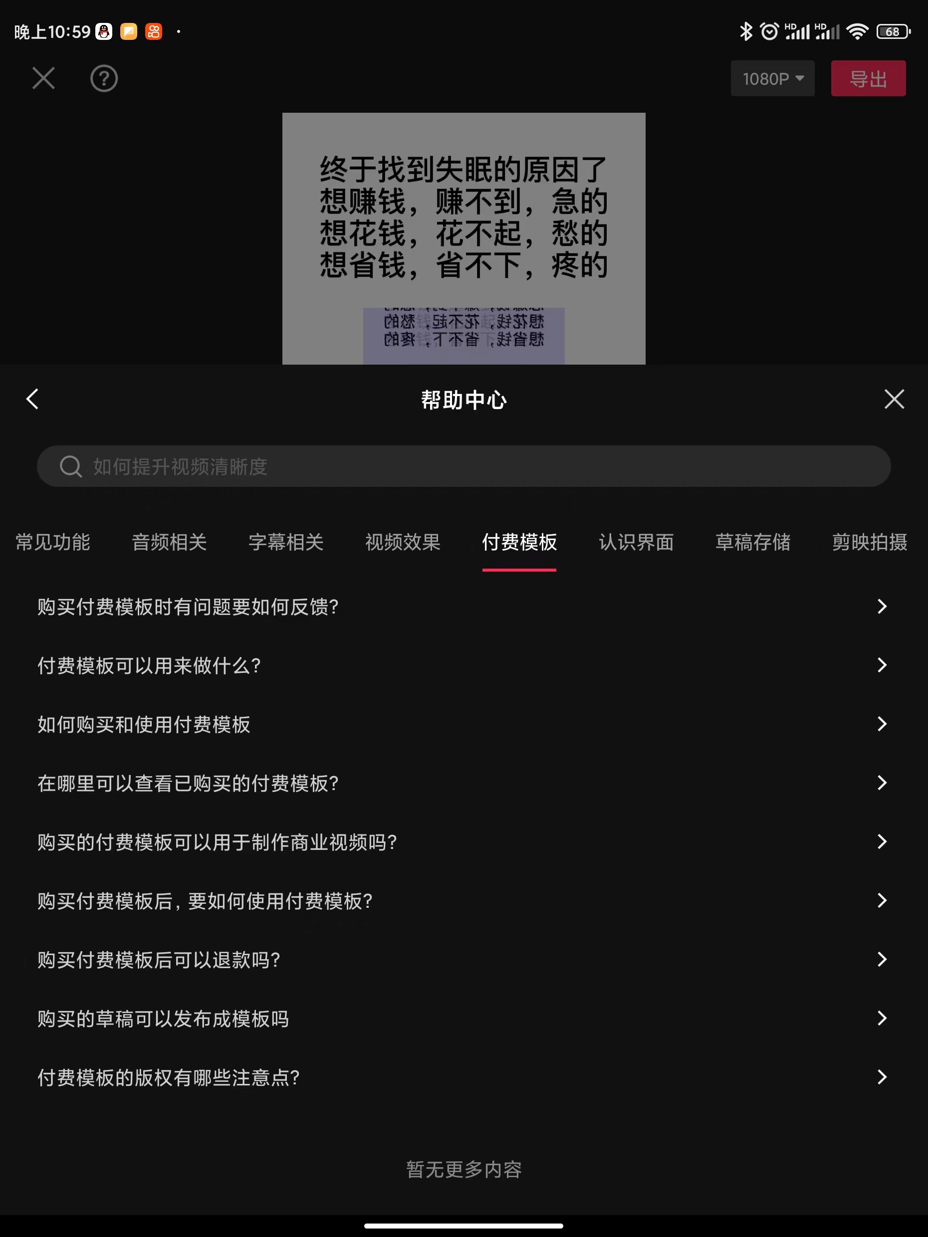 大家都知道剪映本身都是不需要会员都能使用基本剪辑功能,导出的时候不带水印,是这个样子的,但是那些会员模板呢,同款呢,就需要会员,或者单独消费解锁了!