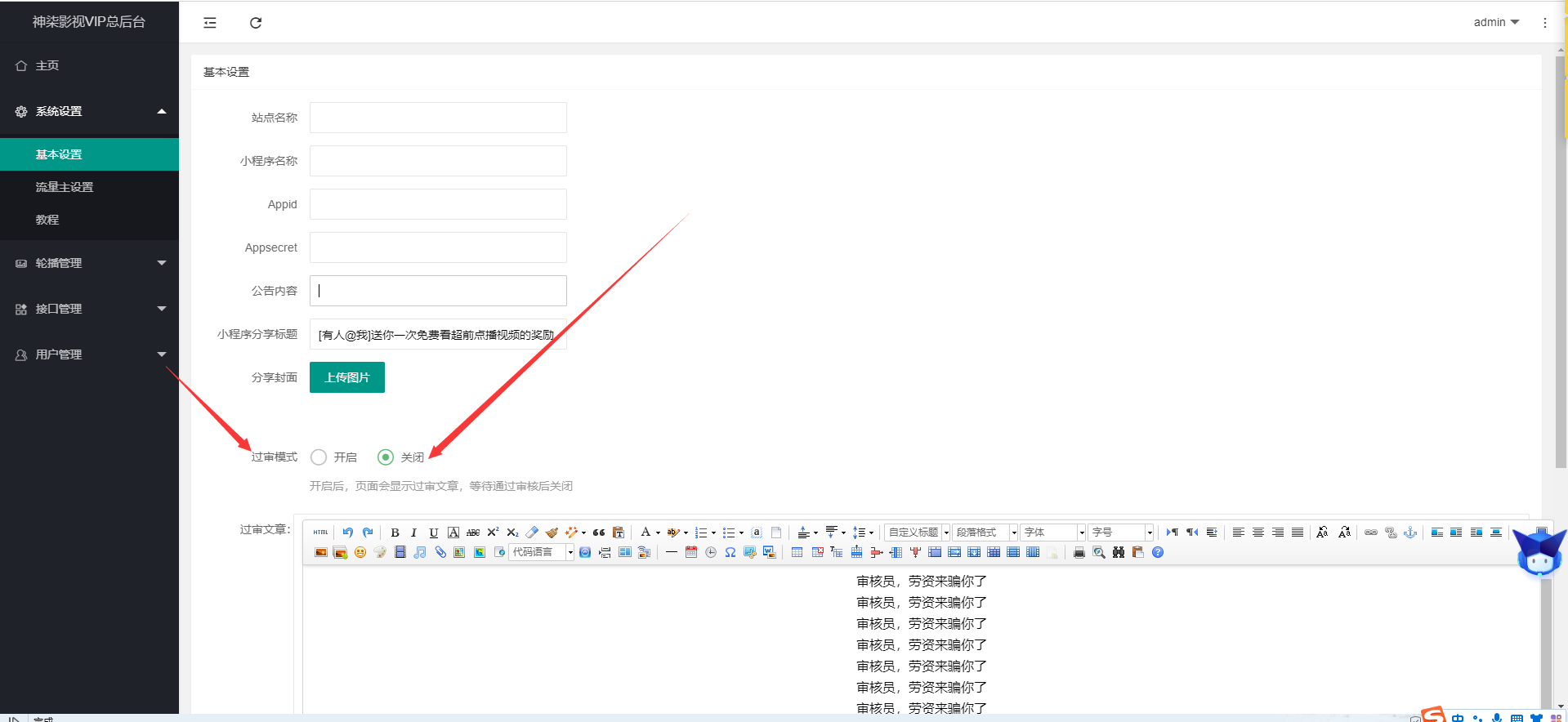 6.增加小程序过审核功能,后台自定义审核页面