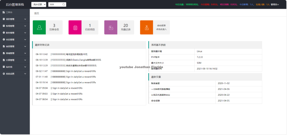 1、新增短信接口:短信宝、云片短信、网建短信。 2、新增阿里API实名认证,支持开启或关闭。 3、新增阿里API银行卡实名认证,支持开启或关闭。 4、新增项目分类开关、支付宝和微信提现开关、签到理财开关等更多更能请自行体验。 注:在使用本系统时,使用方必须在国家相关法律法规范围内并经过国家相关部门的授权许可,禁止用于一切非法行为。 使用用途仅限于测试、实验、研究为目的,禁止用于一切商业运营,本团队不承担使用者在使用过程中的任何违法行为负责![]()