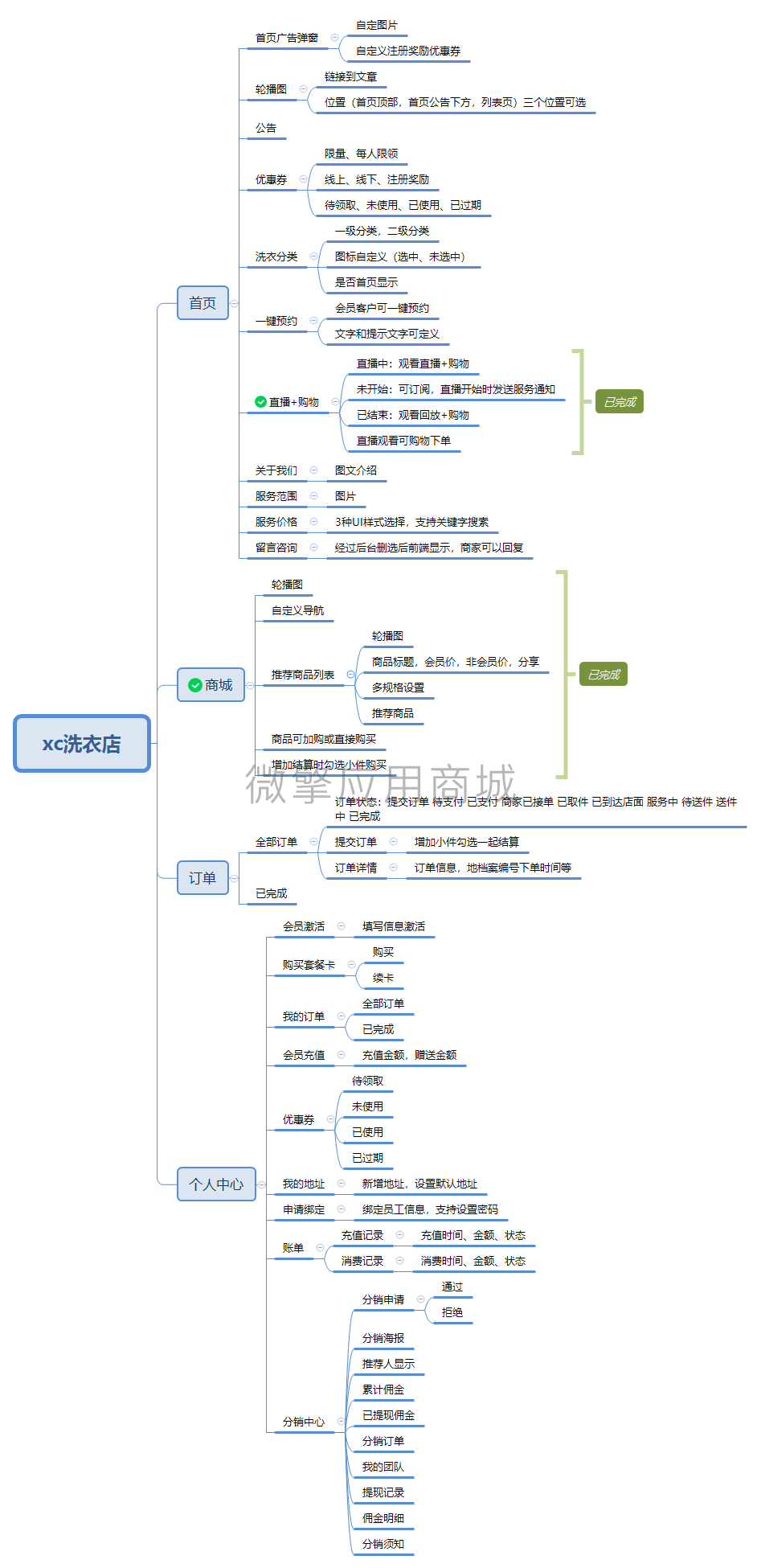 洗衣小程序的思维导图上比较详细,带会员卡功能!