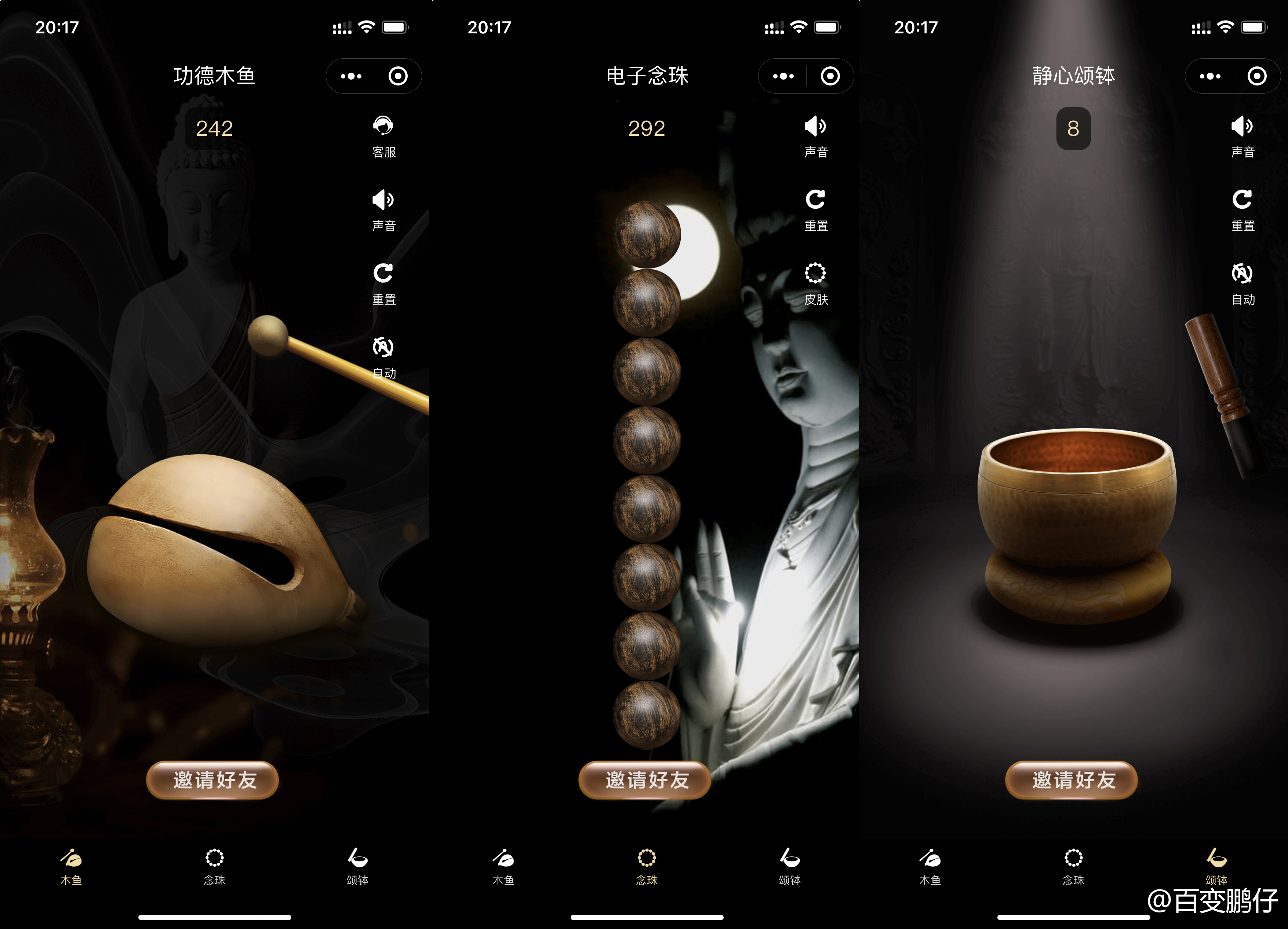 小程序分为三大功能:木鱼、念珠、颂铂