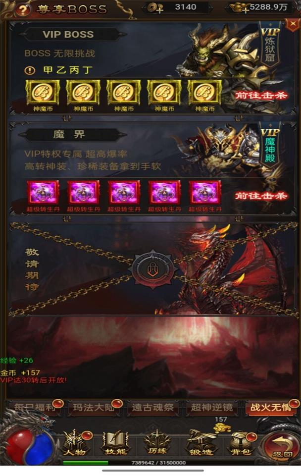 定制超炫时装 定制超炫称号 定制超炫战宠以及神魔币兑换极品装备系统等等!全新活动福利!新手开局任务金币改为元宝!!