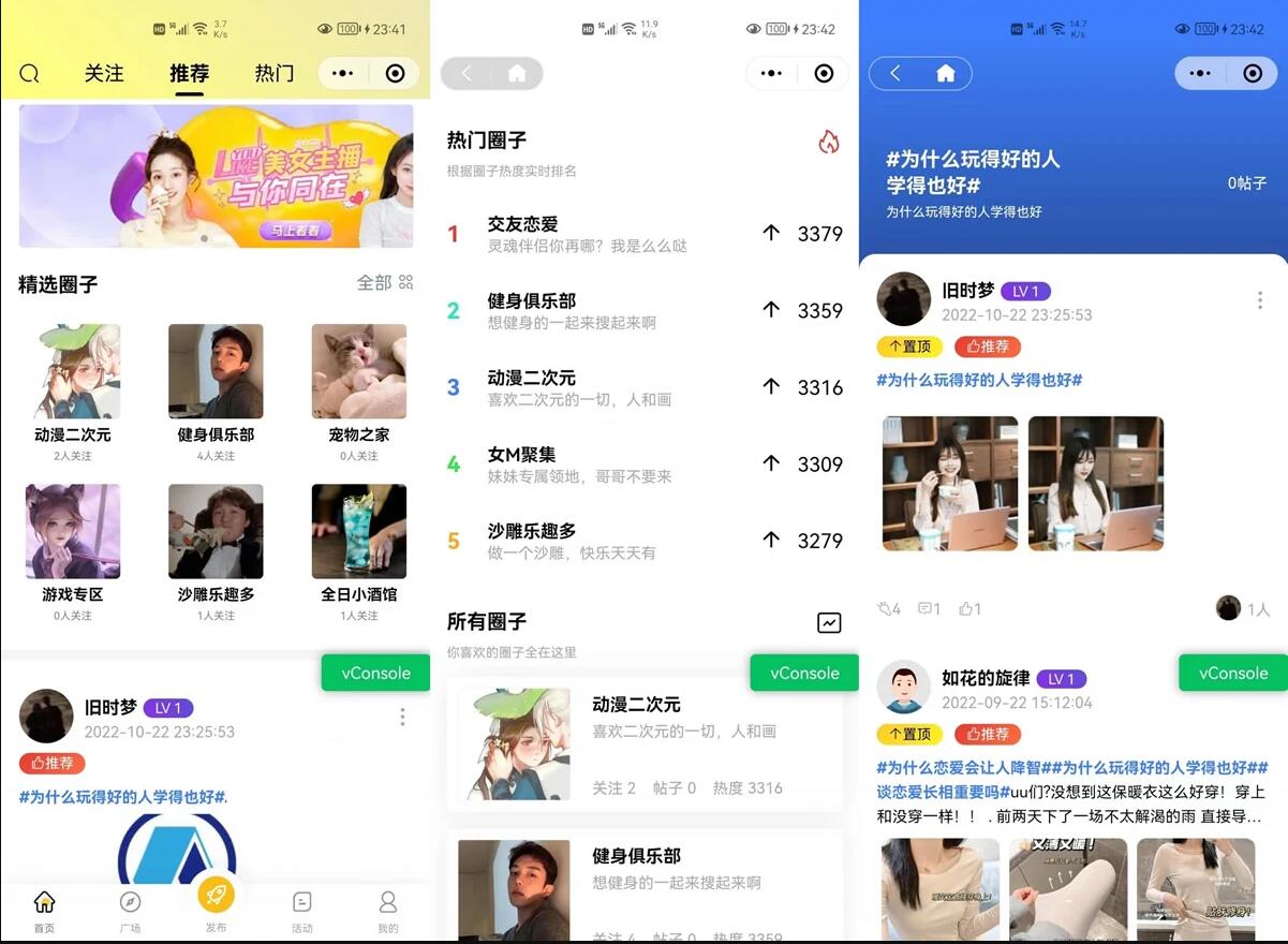 圈子论坛社区系统,含完整的后台系统。thinkPHP+uniapp 全开源