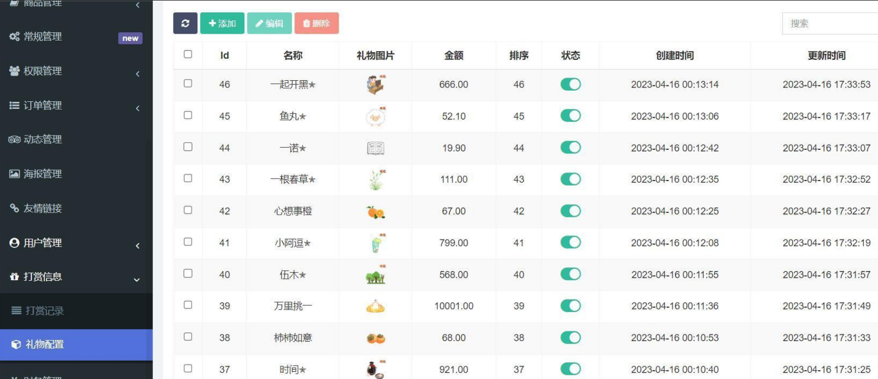 4.增加礼物墙功能 增加店员满足业绩,才能升级功能