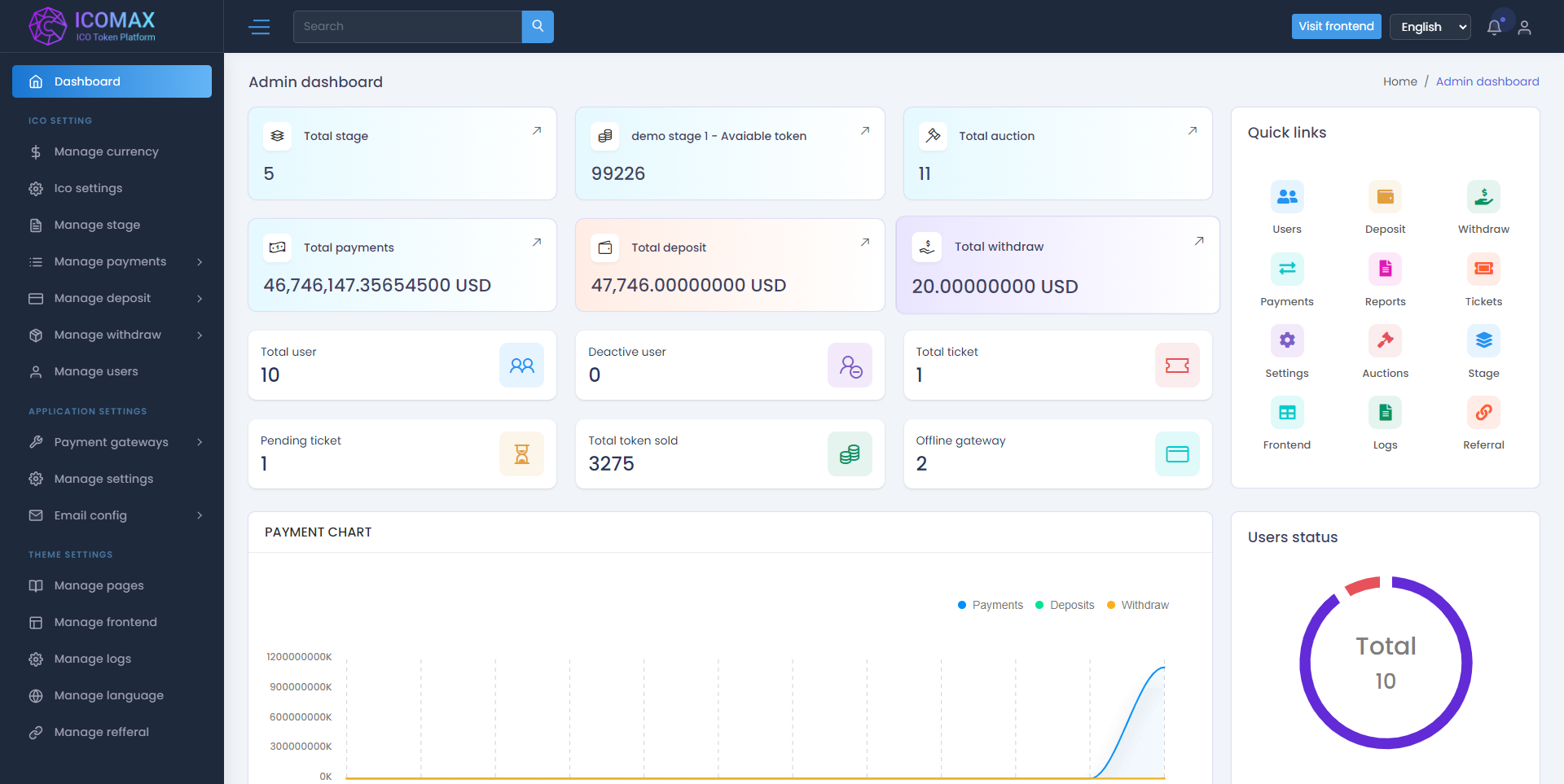 ICOMAX Token Sale & Auction Platform 是一款功能强大的数字资产交易平台,为用户提供了安全、高效的交易环境。该平台基于最新的 Laravel 8.x 框架开发,具有易于安装、多语言支持、在线/离线支付网关、KYC、电子邮件和短信验证等特色功能。此外,ICOMAX 还支持多种支付网关,包括 Razorpay、Coinpayment、Mollie Payment、NowPayments、PayStack、Flutterwave 等。用户可以使用法定货币和多种加密货币进行阶段性销售,并享受拍卖和聊天等功能。无论是个人用户还是企业机构,ICOMAX 都能满足其数字资产交易的需求。
