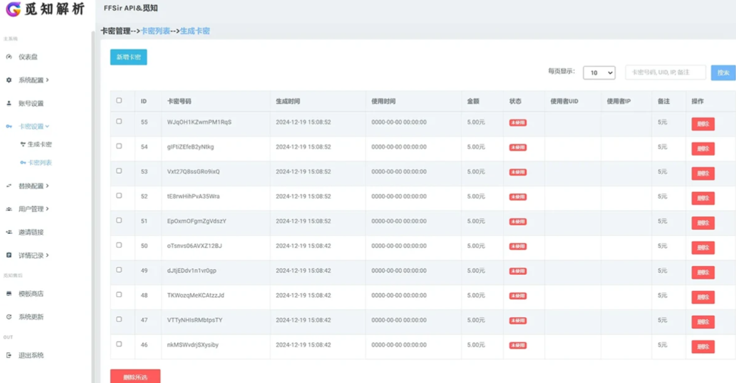 5、新增卡密充值功能,方便一些朋友没有支付接口通过卡密给用户充值