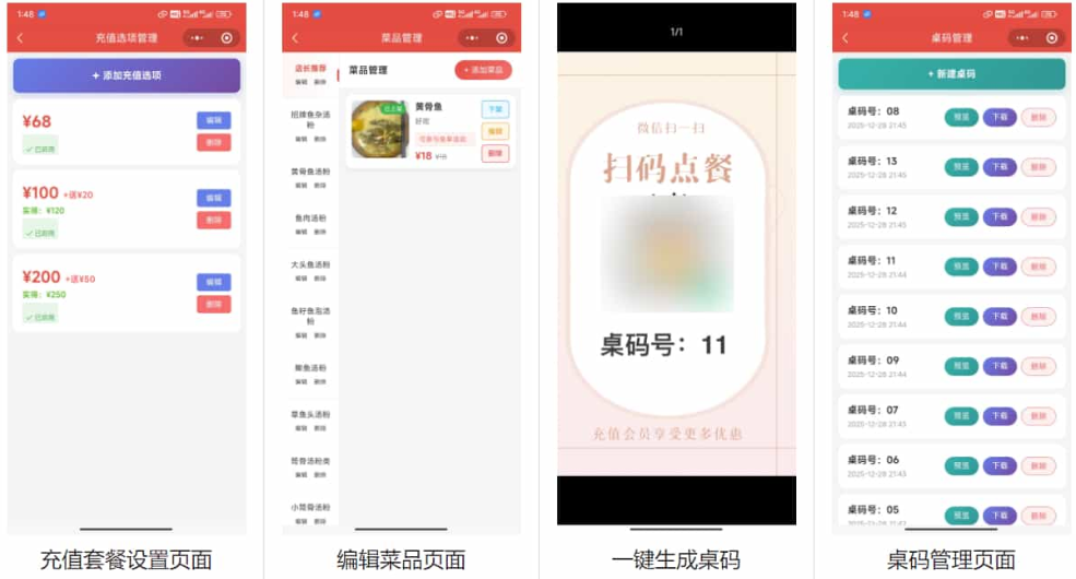 功能亮度:一键生成桌码、打印菜单小票(不需要人工手写菜单)