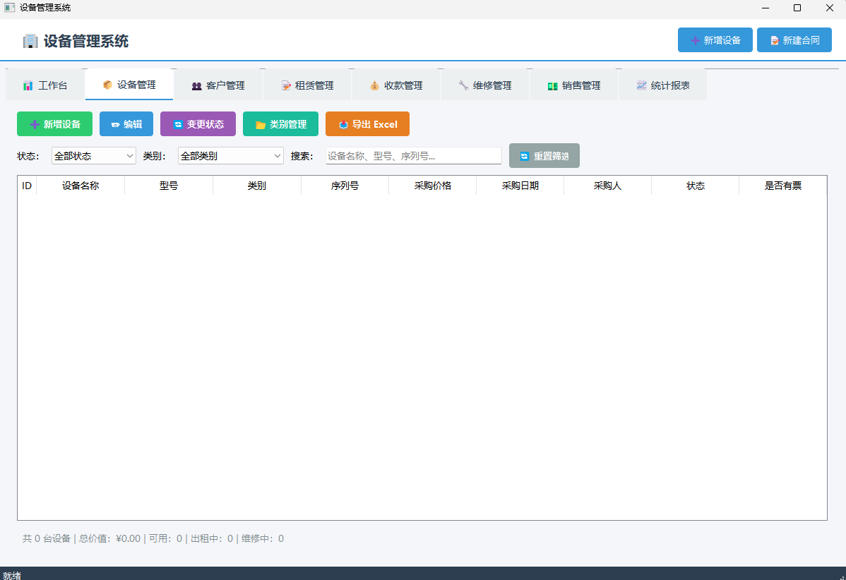 ✅ 设备管理 – 采购、入库、状态跟踪