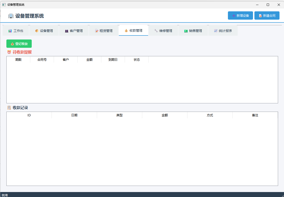 ✅ 收款管理 – 收款登记、到期提醒