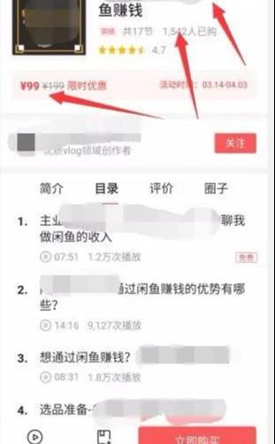 如果说引流到个人号实现成交有点像割韭菜的感觉,让很多人接受不了这种变现方式的话,我觉得这个付费专栏就是个不错的选择,这个属于是可见即可得,有些什么课程目录都标得清清楚楚,并且还有试看,觉得合适再购买,觉得不适合就不买,公众透明,如上图是有个人做的闲鱼项目付费专栏课程,单价卖99元,有1542人购买,通过这个付费课程就实现了15W收入,并且这还是头条支持的,因为全程在头条上交易,没有导流到其他平台,非常正规,这种变现方式就是平台自带流量属于,哪怕你没什么粉丝也没什么关系,比如上面这个课程,头条就会通过大数据分析,把课程推荐给搜索过咸鱼赚钱,或者对网络副业感兴趣的人,因为都是精准流量,所以很容易实现成交。