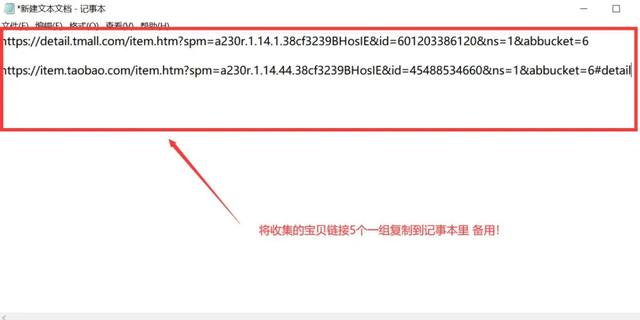 2 把宝贝链接保存到记事本里,五个一组,方便后期利用小鸭工具将这些宝贝上传到你的店铺,小鸭淘宝有卖 30元/月