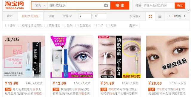 比如我们搜索:双眼皮胶水 如下图所示: