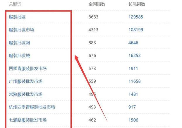 但是服装批发这个词早就被人做了,所以我们只能通过星网大数据,去挖取长尾词。