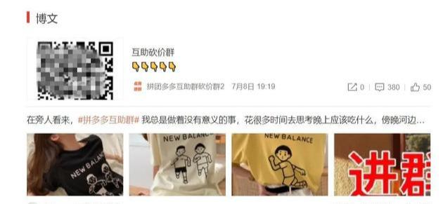 于是,利用“拼多多砍价”引流的机会来了,当我们普通人微博上搜索的时候,就会搜索到下面的内容,如图:
