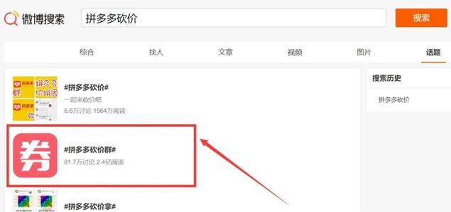微博的日活跃量用户已经超过2亿了,我们先看一个案例,现在的拼多多砍价很火,很多认由于没有那么多的亲朋好友砍价,就会在微博上搜索“拼多多砍价群”,以至于这个话题达到了2.4亿的阅读;