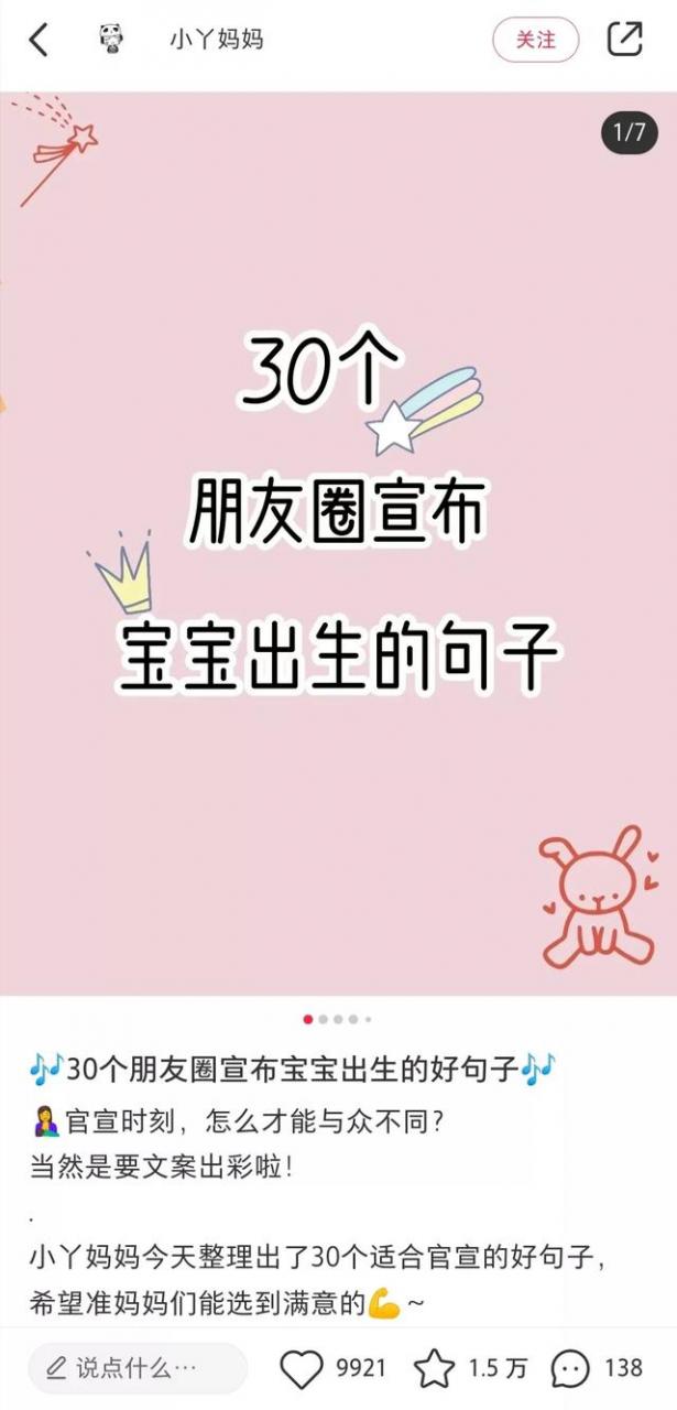官宣怀孕文案:文案类的笔记在小红书总是特别的受欢迎