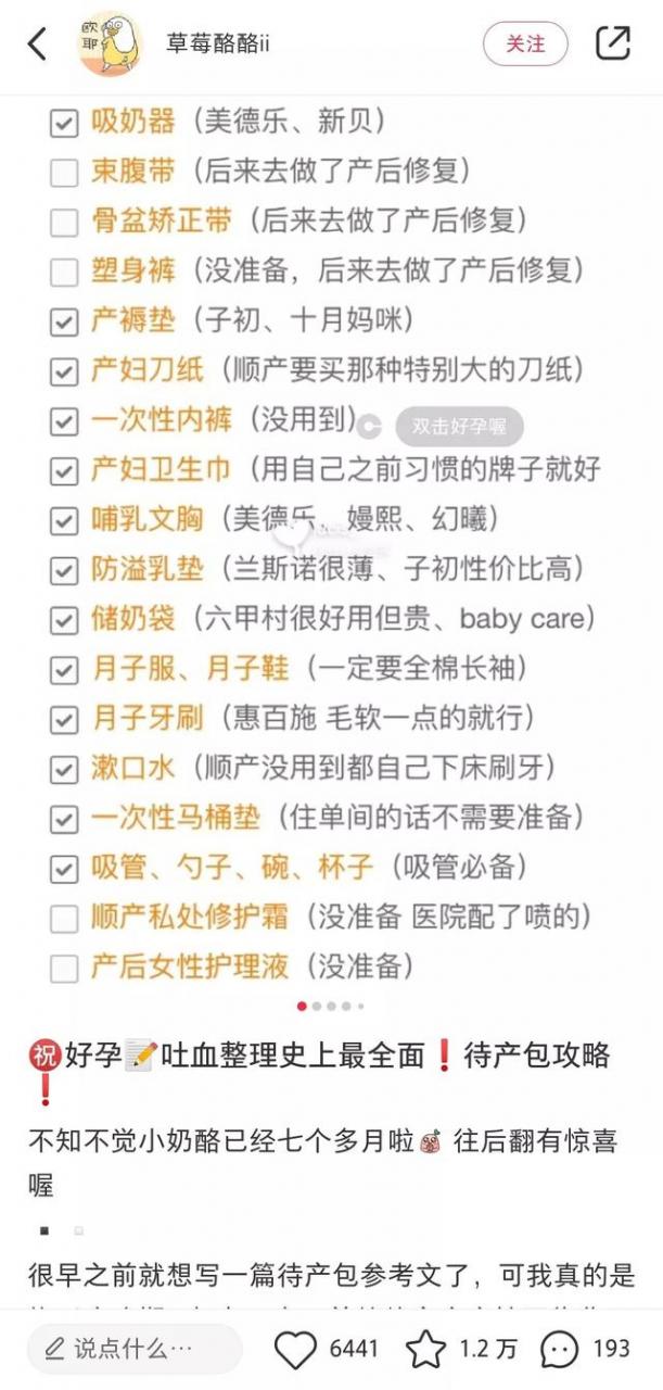 对于这篇笔记内提到的各种产后会用到的产品,都可以分开来写一篇好物分享了,所以能写的内容真的是非常的多了!另外,不同的生产月份,需要准备的待产包的物品会有所不同,这也是可以写作的方向