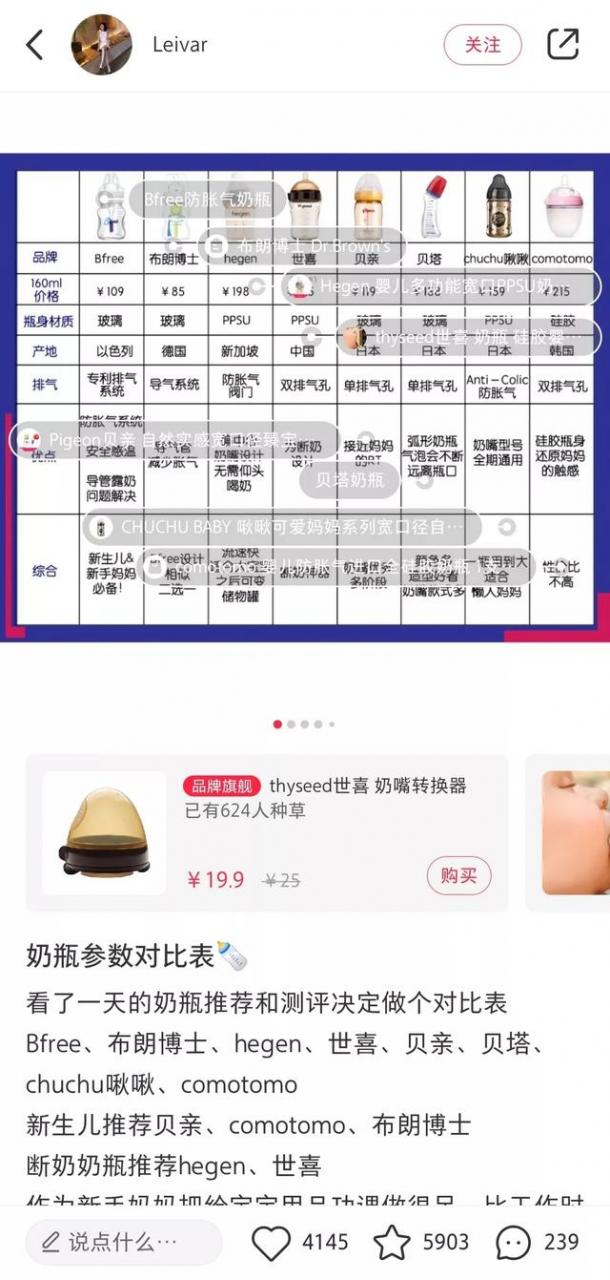 可以看出在母婴类的笔记中,与摄影、花艺等类目不同,用户更关注于内容的价值,这也可以理解,搜索母婴类笔记的用户一般都是宝妈或者照顾宝妈和宝宝的人,他们对于内容的诉求就很简单——是否能够解决他们现在面临或者可能面临的有关宝妈和宝宝的各方面的问题