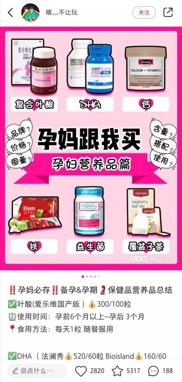 2019年小红书社区生态报告显示,母婴类已经成为2019年博主最爱创作的内容第6位,母婴类内容在小红书平台有众多的受众,小红书对于新手妈妈来说,可以说是一部百科全书,从备孕期、孕期、待产期、月子期、哺乳期、断奶期以及这期间产生的一些心理问题,新手妈妈们都能从小红书找到她们所需要的内容,而在这过程中,她们也可以在小红书分享她们的育儿经,从帮助别人中获得自己的成就感。