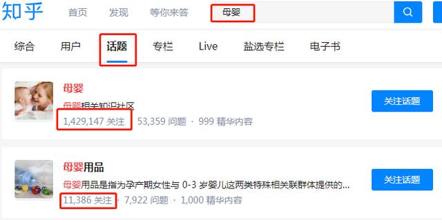 比如宝妈群体,关键词京东的分类都给大家列出来了,省去麻烦,然后找几个主流平台,如微博、知乎、头条、抖音、快手、小红书去挨个搜索一遍就知道在这里是否有你想要的用户。
