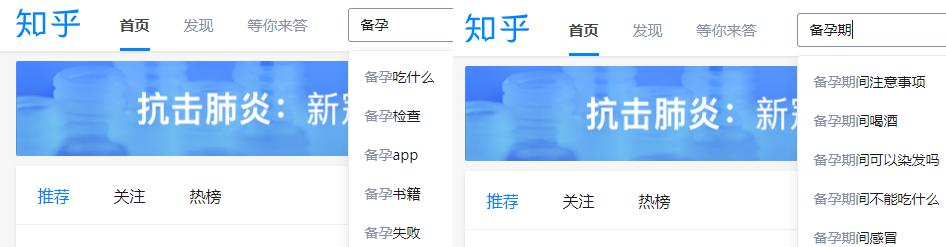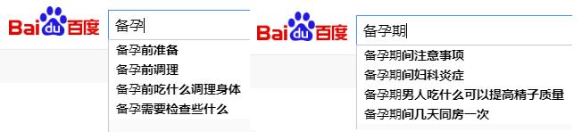 可以看到不同的关键词搜索结果不同,不同的平台关键词搜索下拉框也不同,这样随便换几个关键词,换几个平台搜索下,基本都能知道备孕期间的人有什么需求,这么简单的问题不需要多说吧?
